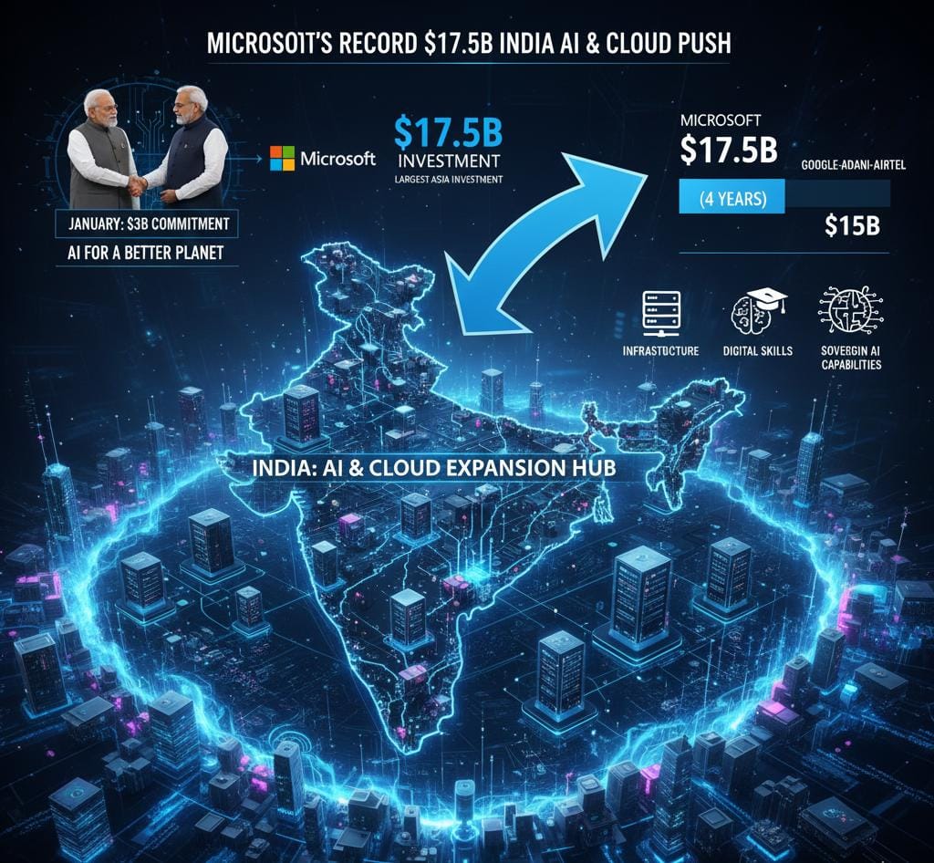 Source: Economic Times, 10 December 2025 Microsoft to invest $17.5B in India, its largest Asia investment—focused on AI and cloud expansion.Follows CEO …
