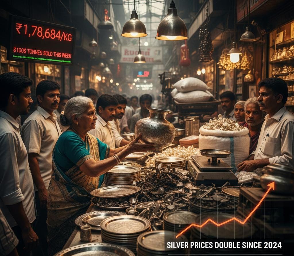 Source: Economic Times, 5 December 2025 Indians sold 100 tonnes of old silver in a week—10× the normal monthly supply.Silver has more …